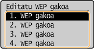 Hautatu editatu nahi duzun WEP gakoa (1-4) eta sakatu