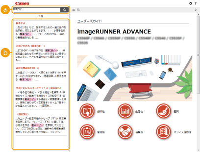 ユーザーズガイドはいくつかの画面に分かれていて、それぞれ内容が異なります。