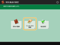 <状況確認/中止>画面の送信履歴から、ワンタッチボタンに宛先を登録することができます。ファクス番号などの宛先を直接入力する手間が省け、また誤入力による誤送信を防止することができます。送信履歴からアドレスを指定して<宛先の登録>  <ワンタッチ>を押すと、ワンタッチの登録画面が表示されます。