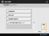 <設定/登録のショートカット>に、(設定/登録)を押して表示される設定項目のショートカットを登録することで、深い階層にある設定を素早く呼び出すことができます。