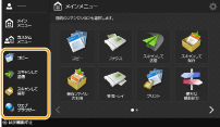 コピー、ファクス、スキャンの基本画面に表示されている設定ボタンを、他の設定ボタンに変更することができます。また、ログインしているユーザーによって異なる基本画面を表示させることもできます。