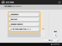 (設定/登録)を押して表示される設定項目のショートカットを作成できます。深い階層にある設定をひんぱんに使っている場合など、素早く目的の表示に切り替えたいときに便利です。