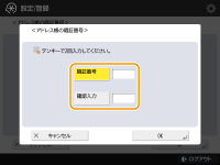 暗証番号を入力し、<確認入力>を押します。確認のため、再度暗証番号を入力し、<OK>を押してください。