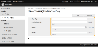 [ユーザー管理]  [認証管理]  [ユーザーグループ管理]をクリックする
