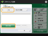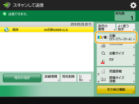 スキャン後に<ワンタッチ>画面から宛先を選択する場合は、<デフォルト画面の変更>で<ワンタッチ>を設定します。同じ宛先にスキャンする場合、設定する手間を減らすことができます。<送信> クライアント機に表示されるサーバー機のワンタッチ宛先は、以下のタイミングで最新の状態に更新されます。 クライアント機からの送信が完了したとき クライアント機でリセットキーを押したとき クライアント機でオートクリア機能が作動したとき |