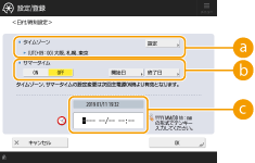 <タイムゾーン>または<サマータイム>の設定を変更した場合は、電源を切って再起動する必要があります。電源スイッチを押して電源を切り(電源を切る)、主電源ランプが消えて10秒以上たってから、再度電源を入れてください(電源を入れる)。