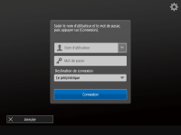 ![]() | Utilisez le clavier logiciel pour saisir le nom d'utilisateur et le mot de passe. |
