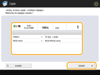 Vérifiez les réglages et appuyez sur <Suivant>.