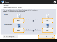 Per ridurre l'effetto moire quando si copiano documenti contenenti foto stampate, ad esempio, opuscoli o riviste, regolare il comando in <Foto/Immagine> su <Basso>.