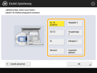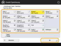 Wenn der Papiertyp des eingelegten Papiers nicht auf der detaillierten Einstellungsanzeige aufgeführt ist, können Sie diesen in der Liste für die Papiertypen registrieren.