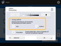 ![]() | Sie können die Dichte des Hintergrunds anpassen. Auf diese Weise können Sie klare Kopien von Originalen wie Zeitungen oder Originalen mit farbigem Hintergrund erstellen. Anpassen der Dichte des Hintergrunds von Kopien |