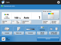 Pulse los botones de función de la pantalla <Menú principal> para ver la pantalla de Funciones básicas, donde podrá acceder a funciones básicas como copiar, enviar faxes y escanear. A pesar de que la pantalla y las opciones de la pantalla Características básicas difieren según las opciones, podrá cambiar las opciones en función de sus necesidades.