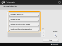 Si suele utilizar la misma combinación de ajustes para realizar copias, mandar un fax y escanear, le recomendamos que registre dichos ajustes como <Opciones favoritas>.