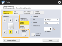 Pulse <Establecer detalles>, especifique cada opción y pulse <Aceptar>.