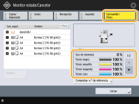 (Monitor estado/Cancelar), se muestra la pantalla Monitor estado, donde se pueden revisar el nivel de tóner u otras indicaciones de estado.