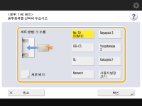 <확인>을 누릅니다. 수동 급지대에서 자주 사용하는 용지 크기 및 종류 등록