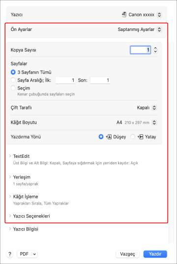 Yazdırma seçeneklerini yapılandırın.