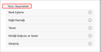 [Yazıcı Seçenekleri]'ne tıklayın → gereken öğeleri yapılandırın.
