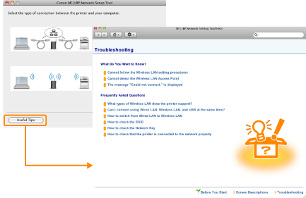 Bağlantı ayarları sırasında sorun yaşarsanızEkranın sol alt köşesindeki [Useful Tips] öğesini tıklatın ve yardım içeriklerine bakın. |