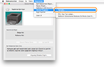 Statusmonitor programının [Seçenekler] menüsünden, [Hizmet Programı] → [Temizlik] veya [Temizlik 1] öğesini seçin.