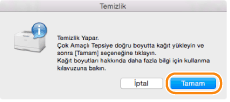 Sabitleme silindirini temizleme işlemi iptal edilemez. Lütfen tamamlanana kadar bekleyin. (Kağıt tamamen çıkınca, temizleme işlemi tamamlanmış demektir.) |
