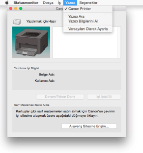 Yazdırma işlerinin ilerlemesini izleyebileceğiniz yazıcıları görüntüler. Birden çok yazıcı varsa izlemek istediğiniz yazıcıyı seçin.