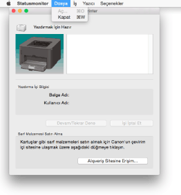 Aşağıdakiler, Statusmonitor penceresinin [Dosya] menüsündeki işlevlerdir.