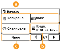 На дисплея се показва екранът <Начало> за инициализиране на операции и екрани за задаване на настройки. Тук можете също да преглеждате хода на задачите и съобщения. Докоснете дисплея, за да го активирате.