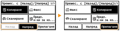 Докоснете <Назад> или <Напред>, за да преместите бутона, а след това докоснете <Прилагане>.
