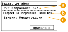 Можете също така да извършите подробни настройки за дестинациите от <Меню>  <Настройки на факс>. Настройките, направени от <Адрес. книга> обаче, са разрешени за подробните настройки на дестинациите, запаметени в адресната книга.