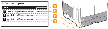 Първо, трябва да зададете размер и тип на хартията, заредена в източника на хартия.