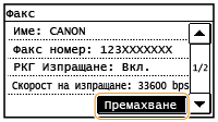 <Да>.Ако сте задали групово набиране на стъпка 2, се показва "XX дестинация(и)". Докосването на <Брой дестинации: > показва дестинациите, запаметени в групата.