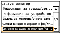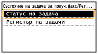 Докоснете <Състояние на задача за получ.факс/Регистър>.