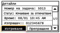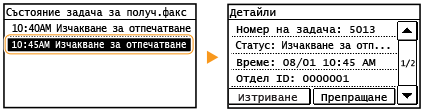 Можете да преглеждате подробна информация за съхраняваните в паметта документи, включително номер на факс на подателя и брой на изпратените страници, и след това да изтривате ненужните документи.