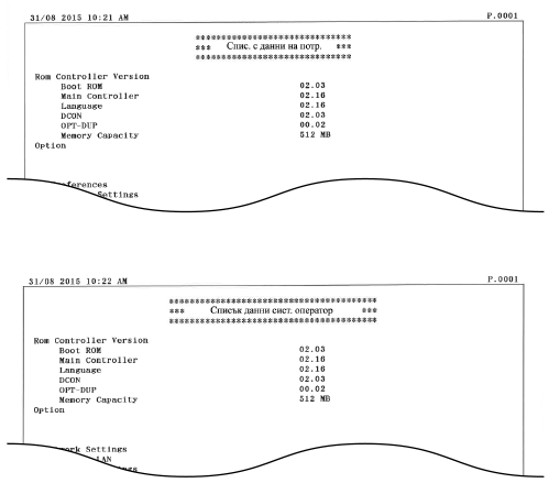 Списъкът с потребителски данни не включва информация за настройките за <Мрежови настройки> и <Настр.за управл.на системата>. За да проверите всички настройки, отпечатайте списъка с данни на системния оператор.