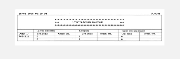 Когато е активирана функцията "Кодове на отдели", можете да отпечатате отчет за проверка на общия брой страници, които са били копирани, отпечатани и сканирани, за всеки код на отдел. Отчетът ви дава възможност да наблюдавате използването и да подобрите управлението на машината.