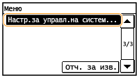 Всички настройки за управление на системата са поместени с кратки описания в списъка. Настройките по подразбиране са отбелязани с кръстче (  ).