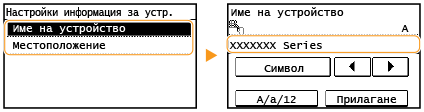 Въведете до 32 символа (цифри и букви) за име и местоположение на машината.