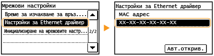 Можете да отпечатате списък с текущите мрежови настройки. Списък с потребителски данни/списък с данни на системния администратор