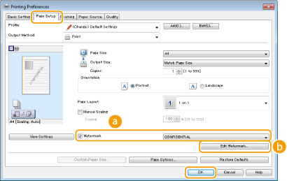 Можете да отпечатвате водни знаци като "КОПИЕ" или "ПОВЕРИТЕЛНО" върху документа. Можете да създавате нови водни знаци или да използвате предварително запаметени водни знаци.