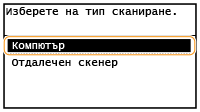 Последователността "сканиране на документ и съхраняване в компютър" може да бъде изпълнена само при сканиране от машината. Сканирайте, като посочите в какви компютърни документи ще съхраните сканираните данни – дали да сканирате документите в цвят, или черно-бяло, дали да съхраните документите като PDF файлове, или JPEG файлове, и други настройки.