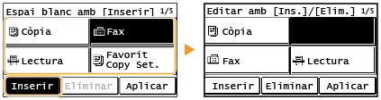 Toqueu el botó en el qual voleu inserir un espai en blanc i toqueu <Inserir>.