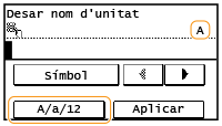 or toqueu <Símbol> quan el tipus de text que s'introdueix és <A> o <a> per mostrar els símbols que es poden introduir a la pantalla. Toqueu els símbols per introduir-los. |