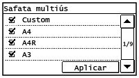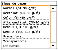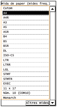 Les mides de paper sense marca de verificació es mostren a la pantalla <Mida de paper (altres mides)>.