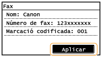 Introduïu el nom amb les tecles numèriques i toqueu <Aplicar>.