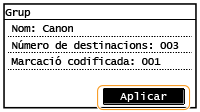 Introduïu el nom amb les tecles numèriques i toqueu Aplicar>.
