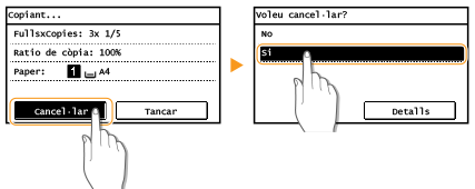 Toqueu <Cancel·lar> a la pantalla que es mostra durant la còpia