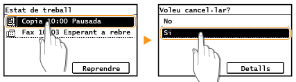 Els documents s'han llegit i estan en espera de ser impresos. Seleccioneu el document de còpia per cancel·lar.