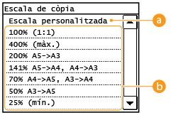 Podeu ampliar o reduir les còpies mitjançant una escala de còpia preestablerta, com ara <A5> → <A4>, o bé establint una escala de còpia personalitzada en increments de l'1%.