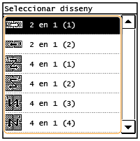 L'ús de <2 en 1>/<4 en 1> redueix l'escala de còpia automàticament (aquest valor es mostra a la pantalla). Podeu augmentar o fins i tot reduir encara més l'escala de còpia abans de prémer